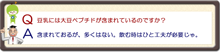 大豆には、今回紹介した大豆ペプチドや大豆サポニン以外にも、美容で注目を集めている大豆イソフラボンなどの良い成分が沢山含まれておる。ダイエットしたい方はもちろん、美容、健康維持を目指している方も、毎日の食事に大豆を取り入れたいものじゃ。 |