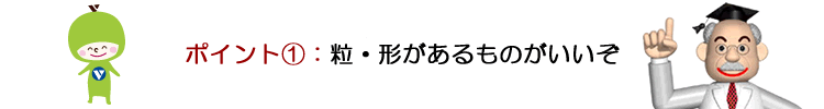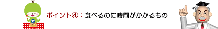 | ゆっくり食べることは食べ過ぎ防止にもなるわけだが、そう心がけるだけじゃなく、食べるのに時間がかかるものを 選ぶのも効果的な方法じゃよ。パクパク食べられるものより、ちょっとめんどう、というものを選んだらいいぞ。 | ![]() |
