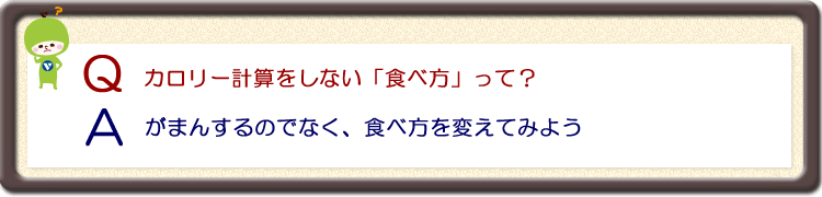 ではお腹が空きにくくなる=早くおなかいっぱいになる食べ方を説明しよう。 「カロリー制限をしているのにやせられないのだけれど・・・」という相談をよく受けるが、カロリーはあまり気にしすぎなくて大丈夫だぞ。 カロリー計算は自分が普段どのくらいのカロリーを摂っているかを知るためのものじゃ。しっかり計算しているつもりでも、栄養の消化吸収には個人差があるから、数字通りにはいかな いもので、実際にはどれだけのカロリーが吸収されるかわからないのじゃ。 カロリー計算に振り回されるとかえって逆効果だから一つの目安にするのがいいのじゃ。 かといって、これまで通り好きなものを好きなだけ食べていたのでは、やせることはできないのじゃ。ダイエットとは、食事全体を見直して、自分の過った 点を改善することであって、食べたいものをガマンする方法は、本当のダイエットではないのじゃ。 カロリーを気にしなくても上手にダイエットできる食べ物はいっぱい。ちょっと発想を変えるだけでおなかがすかない食べ方をすることはできるのじゃ。ここでは、「制限する」より「おなか がすきにくいやせる食べ方」を身につけてほしい。 |