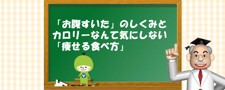| すっかり汗ばんでくる季節になったな。「今年こそ夏までにダイエットしよう」と決意した女の子も多いじゃろ。 まずはじめに実行するのは食事制限かな?この「食べたいっ」という気持ちをコントロールするのが 一番つらいんじゃ。わかるわかる。 ムリな食事制限をしていたら、反動でドカ食いに走ったり・・・空腹と戦うつらさは誰もが一度は体験することだな。 そこで、今回は、「どうしておなかが空くのか」そして「おなかが空きにくい 食事法」について話をするぞ。 |