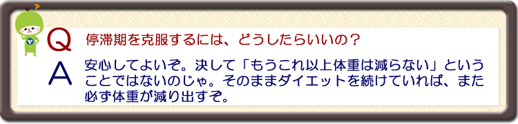 | 「ダイエットを始めて1ヶ月…。はじめのうちはどんどん減ったのに、最近全然減らないの。もうこれ以上、やせないのかしら?」
