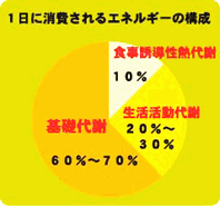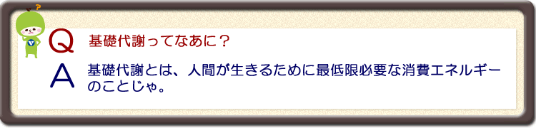 | 1日中ダラダラして何もしなくても寝ていてもお腹はすく。 これは、体を動かさなくても、心臓や肺などを動かすのに必要なエネルギーが消費されているからじゃ。 |