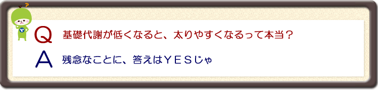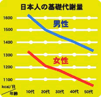 基礎代謝は男性は16歳、女性は14歳をピークに下がりはじめるのじゃ。