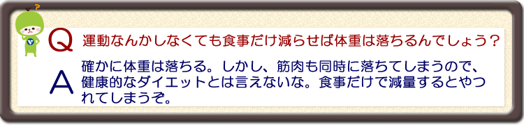 | このように、ダイエットに適度な運動を組み合わせると、脂肪といういらないものだけを落とすことが可能じゃよ。 |